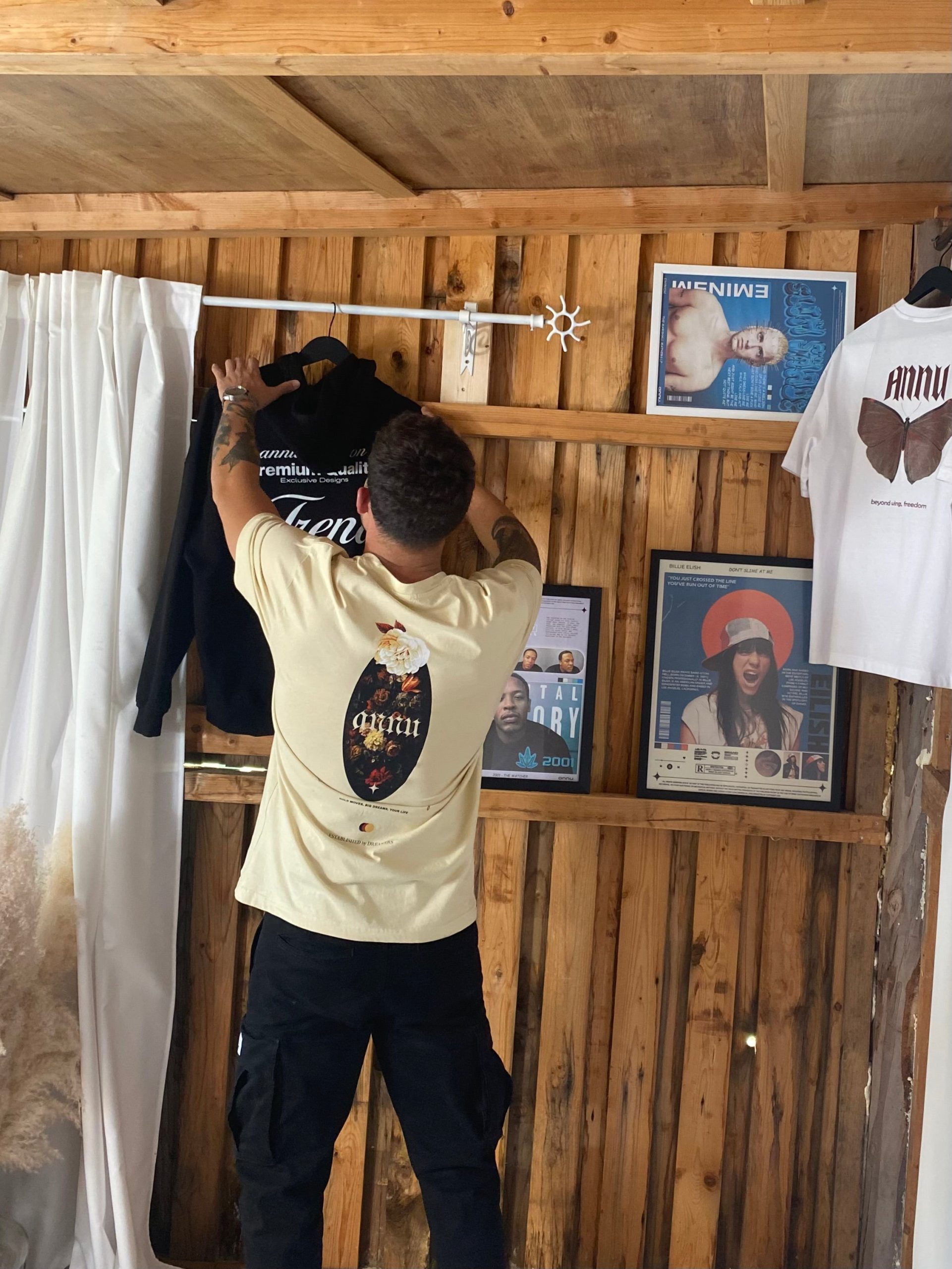 Costura dupla no pescoço, mangas e bainha.